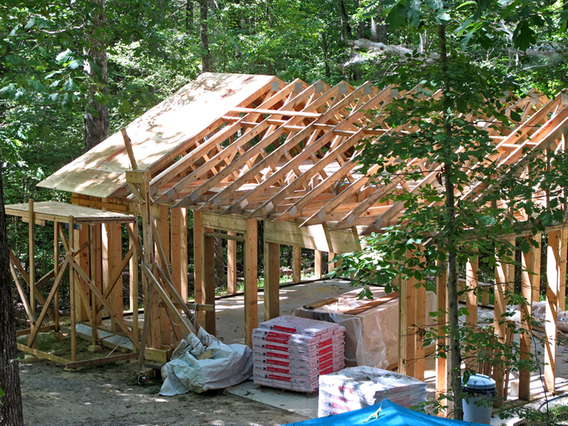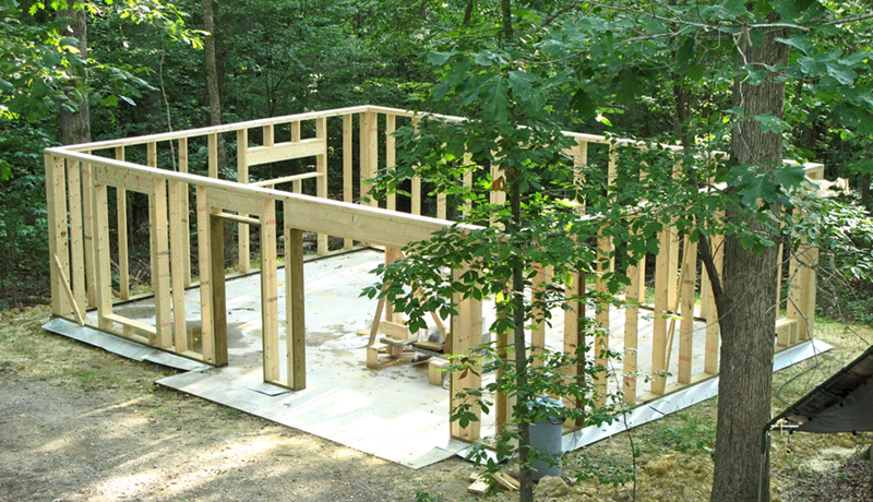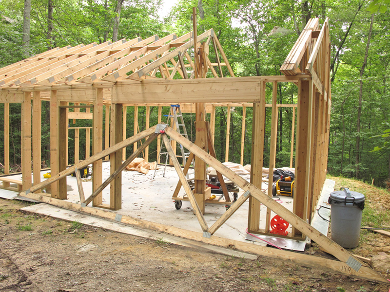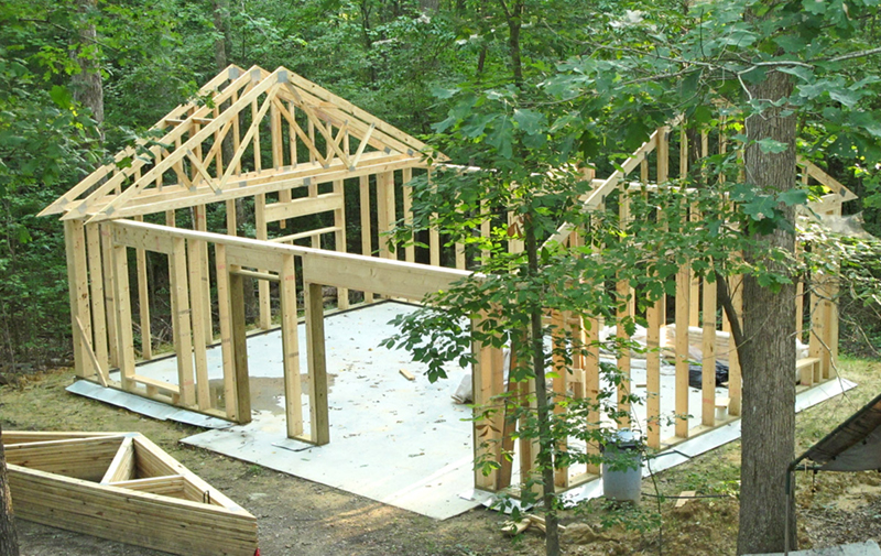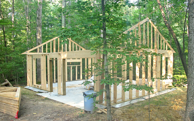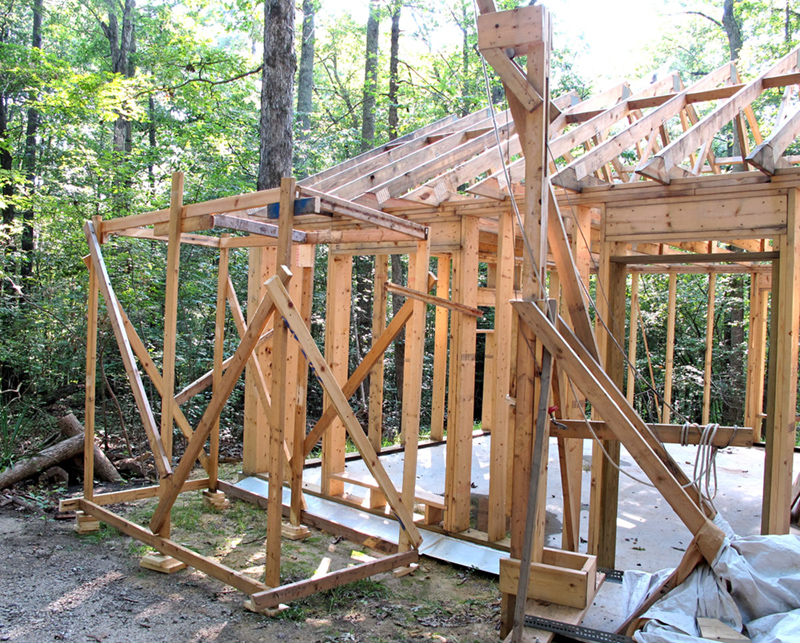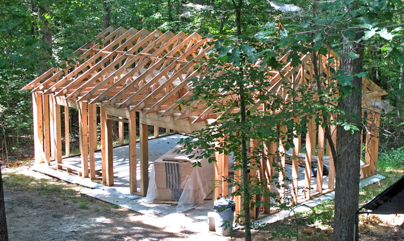 This is how I hand built my studio. It took me about two years. I did everything myself except for pouring the cement, making the roof trusses and installing the insulation; ceiling insulation blown in to an R=38. The frame is made of 2" X 8" lumber and insulated with Fiberglas to an R=25. I also built my hoist which was critical throughout the process.