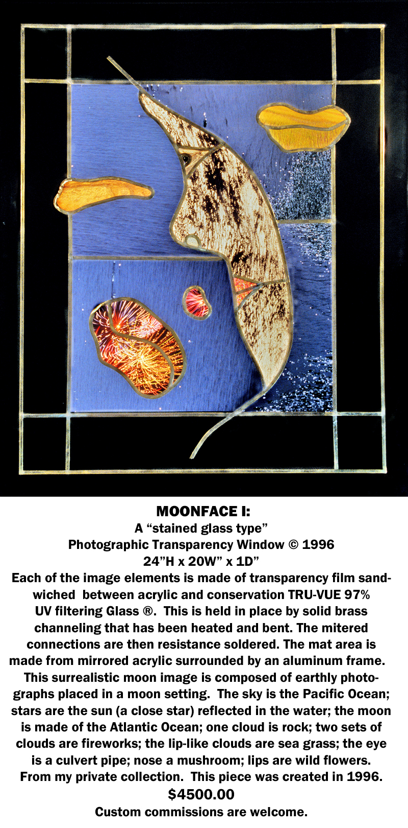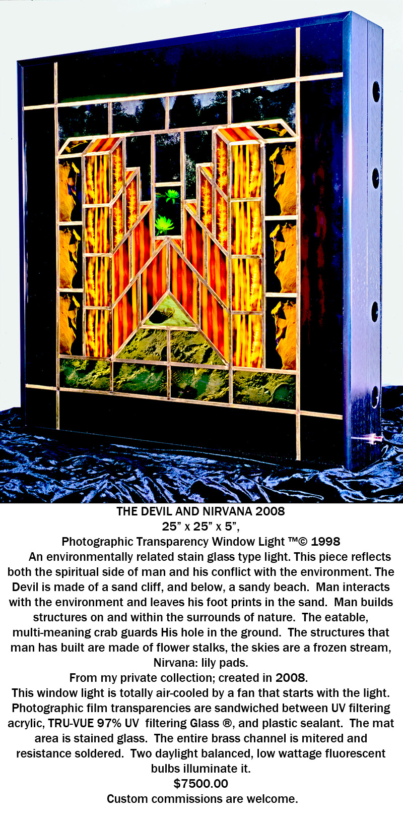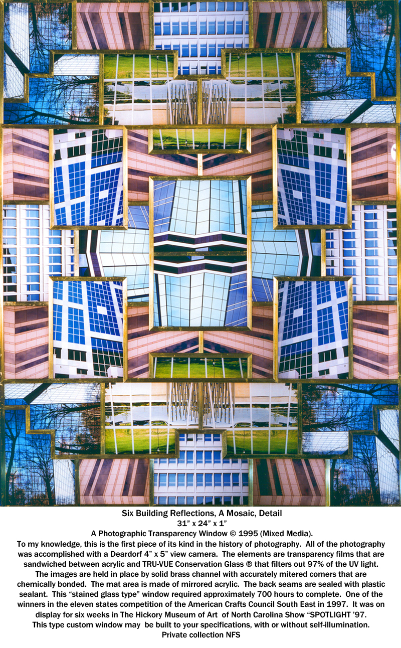 Have a custom made stain glass type Photographic Transparency Window©, Photographic Transparency Window Light©, or Photographic Transparency Sculpture©, made for a room in your home, office or environment. Place it in a wall, ceiling, or open space. Bring in a forest, a scene, or a special concept to enhance any space.